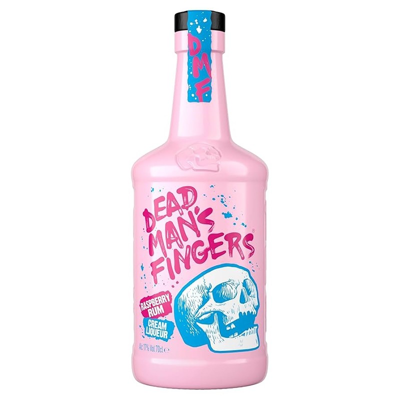 Licor DEAD Mans Rum Fingers Raspberry 700ml. Um licor cremoso e irresistível que combina rum premium com o sabor de framboesa e baunilha, reminiscente do clássico biscoito "dedos de moça". Textura aveludada e sabor doce e frutado. Perfeito sobre gelo, em shots ou como sobremesa líquida.