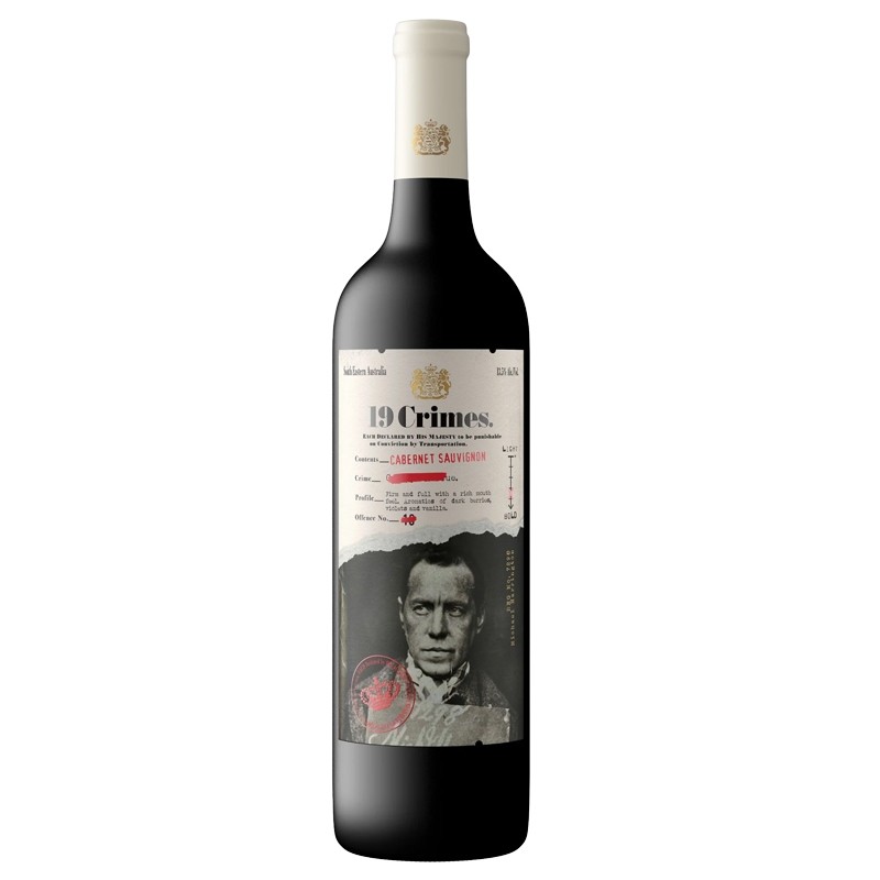 O rótulo apresenta uma história interessante, já que os "19 Crimes" referem-se a um grupo de crimes que foram considerados como passíveis de deportação para a Austrália no século XIX. O vinho apresenta um rótulo com realidade aumentada, que pode ser acessado por meio de um aplicativo de celular, trazendo à vida os personagens e suas histórias.