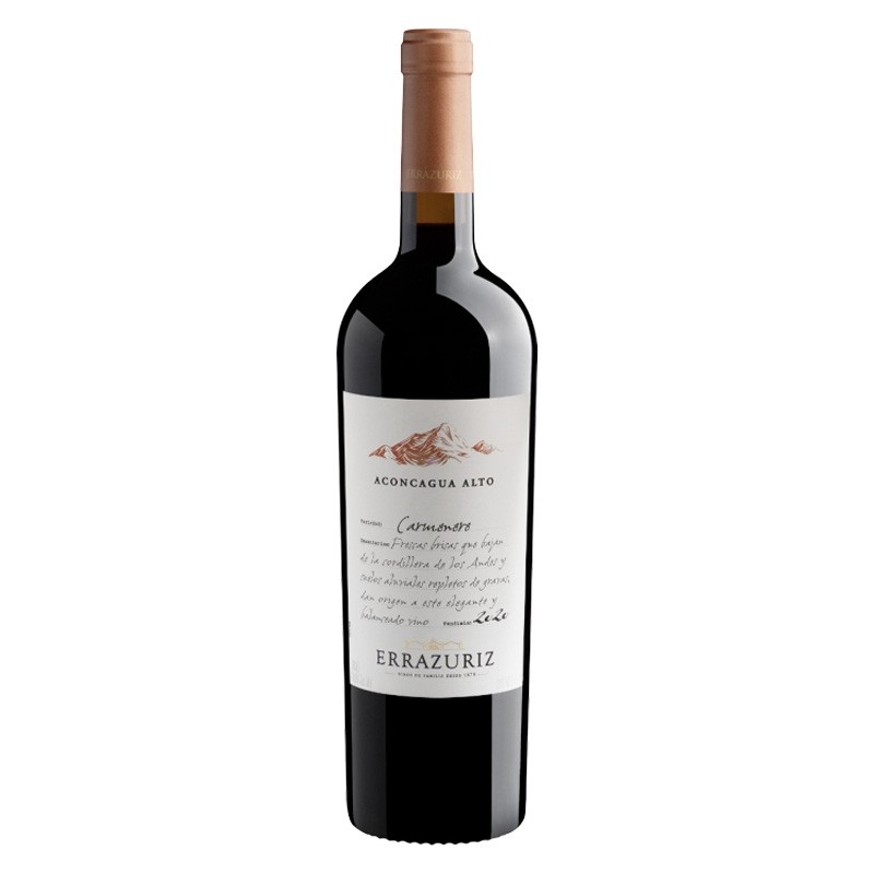 Vinho Errázuriz Aconcagua Alta Carménère é um tinto chileno emblemático, com notas de pimenta-do-reino, frutas negras e um toque de chocolate. Com 750ml e 14% de álcool, é ideal para carnes vermelhas ou pratos condimentados. Um Carménère que honra sua origem bordalesa.